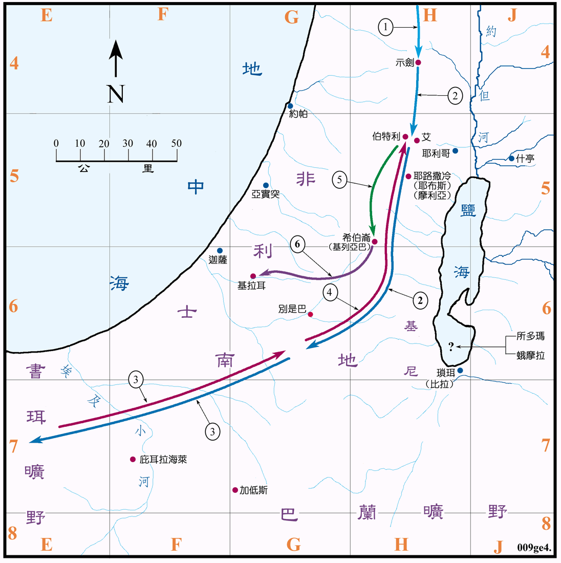 3. 创 12:10-13:1 因饥荒就去埃及,不久再回南地。( 参看创图三)