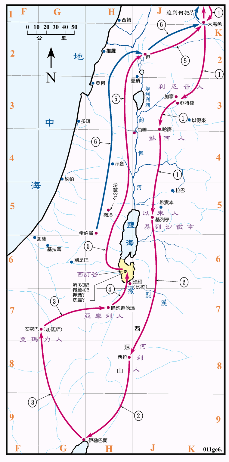 1. 创14:1-4 北方四王攻打南方五王,在南征的途中杀败了利乏音人和苏西人。