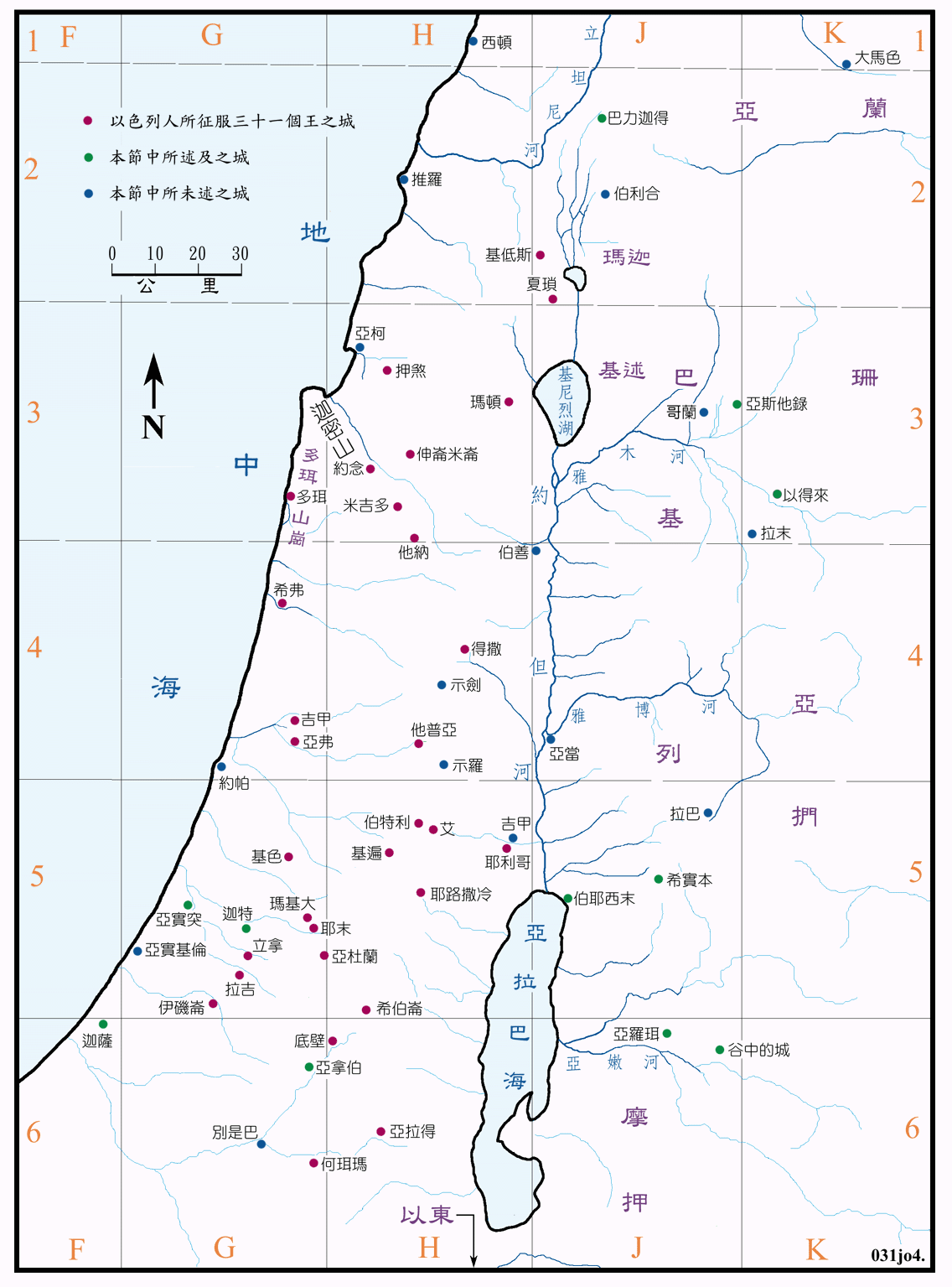 *书12:9-24 以色列人所击杀约但河西的卅三个王。