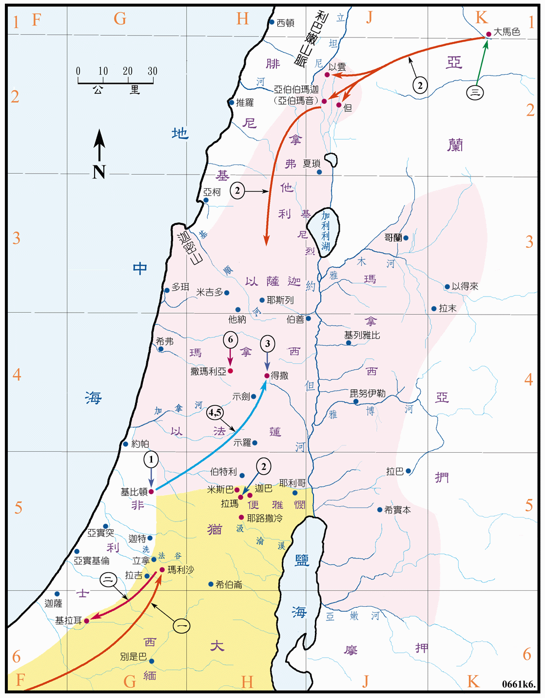 2. 王上 15:16-21,代下 16:1-5 巴沙攻击犹大、在拉玛筑城,但北部被亚兰人攻占,只得撤兵。