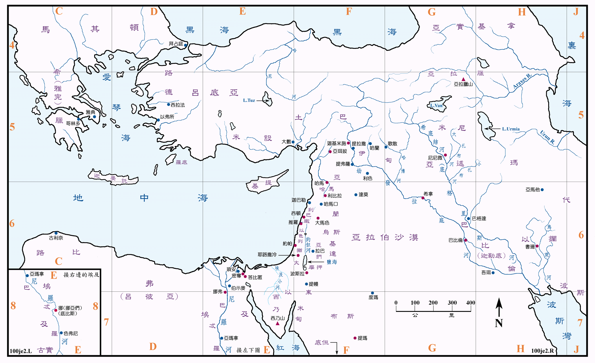 先知耶利米所提到地名的范围甚广,有过往历史,以及他预言中将来的国家及城市,均一一绘在图中。