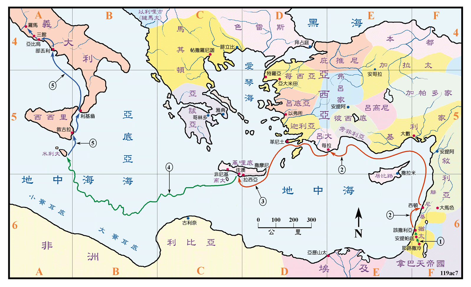 5. 徒 28:1-16 从米利大经叙拉古,利基翁,部丢利就到了罗马。